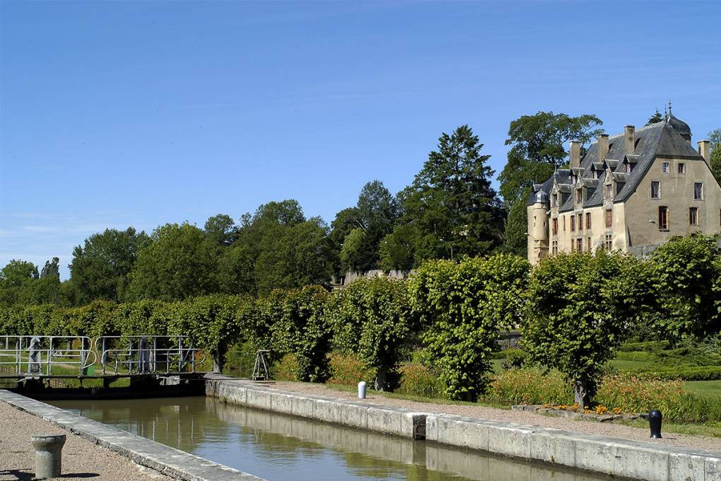 6. Châtillon-en-Bazois : château perché à découvrir depuis votre bateau Perché sur un piton rocheux, le château de Châtillon-en-Bazois se dévoile sur les hauteurs du canal de Nivernais depuis le pont de votre péniche. Le parc, les jardins et le château se visitent pendant la période estivale (de mi-juillet à fin août).
