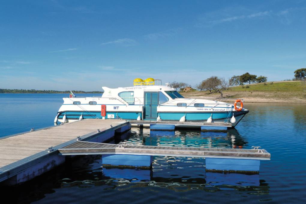 Louer un bateau à la base d'Amieira permet de naviguer sur le grand lac Alqueva, un des plus grands lacs artificiels d'Europe