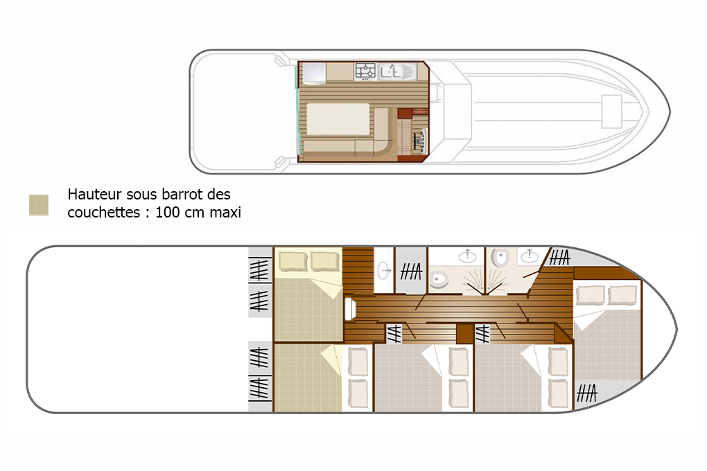 Les équipements à bord varient en fonction des modèles de bateaux. Il est donc conseillé de consulter la page dédiée à chaque bateau pour découvrir les équipements spécifiques disponibles. En général, vous trouverez des installations pour votre confort comme des espaces de vie spacieux, une cuisine équipée, des cabines avec rangements, un système de chauffage et des sanitaires. Certains modèles proposent aussi des équipements supplémentaires tels qu’une terrasse, un bain de soleil ou la climatisation. Nous nous assurons que chaque bateau réponde à vos besoins pour une croisière agréable.